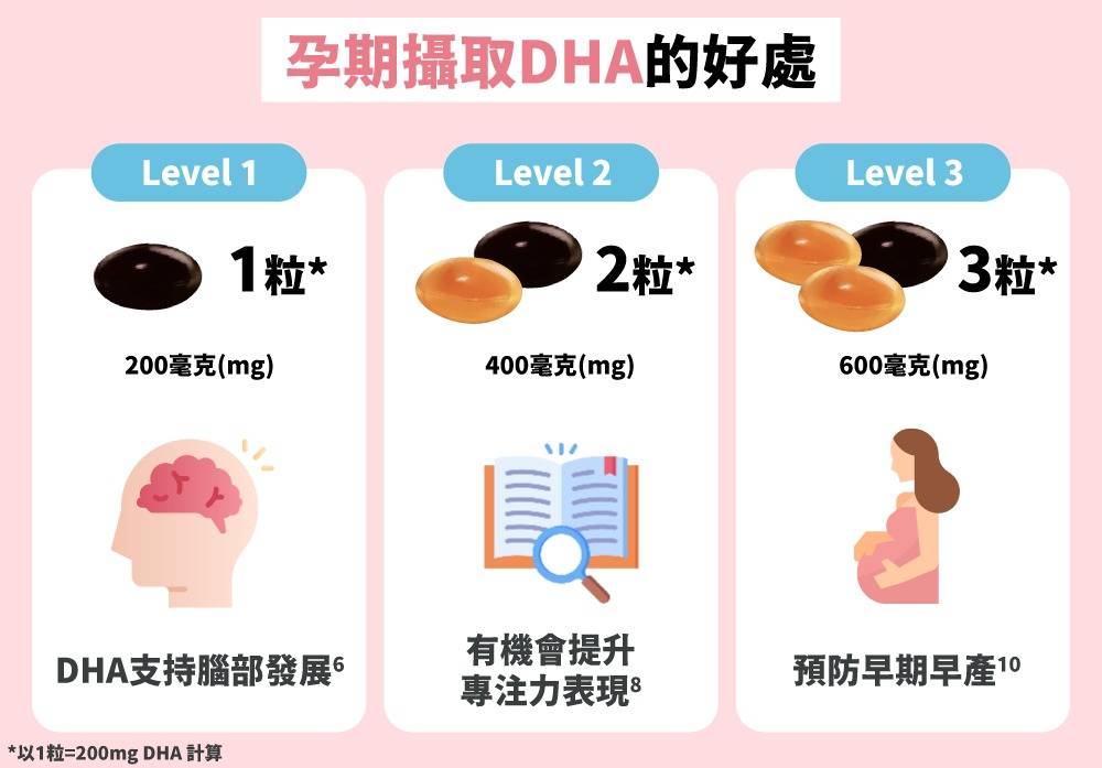 孕媽想有健康的孕期,建議每日DHA的攝取量為400-600mg,會比較理想。
