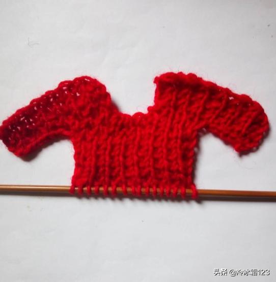 2、然后织上下针从上往下织到腋下。把左右两袖子处收针。