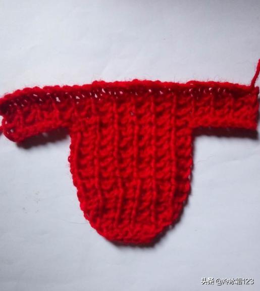 5、两棒针合并在一个棒针上,把两边的袖子边收针。